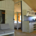 This wooden caravan comes with air conditioning, a private bathroom with shower and toilet, and BBQ facilities. They all have a fully equipped kitchen and a dining area.