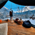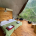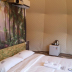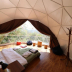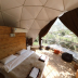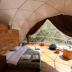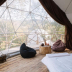 There is a seating area and a kitchenette complete with a stovetop and kitchenware. This luxury tent is allergy-free and soundproof.