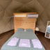 There is a seating area and a kitchenette complete with a stovetop and kitchenware. This luxury tent is allergy-free and soundproof.