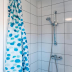 A fridge and a stovetop can be found in the kitchen and there's a bathroom with shower and a hairdryer.