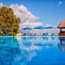 Guests can relax at the sun loungers by the pool and enjoy a refreshing drink from the on-site snack bar. A mini market and a common kitchenette are also available on site.