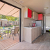 There is a seating area, a dining area, and a kitchenette complete with a fridge, a stovetop, and kitchenware. The property has an outdoor dining area.