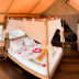 Vegetarian and halal breakfast options with warm dishes, local specialities, and fruit are available each morning at the luxury tent. A family-friendly restaurant can be found at the property, offering a child-friendly buffet.