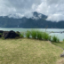 The campground features some units with mountain views, and every unit comes with a shared bathroom.