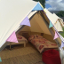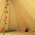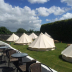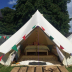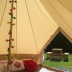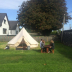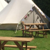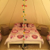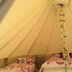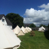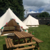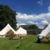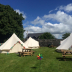 The glamping bell tents are furnished with a double bed and 2 single beds and feature lights and electricity.