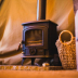 Towels and bed linen are featured in the luxury tent. There's also a seating area and a fireplace.