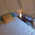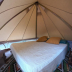 The luxury tent also has a bathroom with a hot tub.