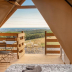 The air-conditioned luxury tent also provides a flat-screen TV, a seating area, and a bathroom with a bidet, a shower and a hot tub.