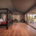 A private entrance leads guests into the luxury tent, where they can enjoy some wine or champagne and fruit. The luxury tent offers bed linen, towels, and daily room service.