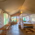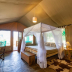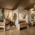 A private entrance leads guests into the luxury tent, where they can enjoy some wine or champagne and fruit. The luxury tent offers bed linen, towels, and daily room service.