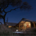 A private entrance leads guests into the luxury tent, where they can enjoy some wine or champagne and fruit. The accommodation has a fireplace.