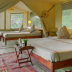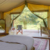 A private entrance leads guests into the luxury tent, where they can enjoy some wine or champagne and fruit. The luxury tent offers bed linen, towels, and daily room service.