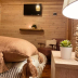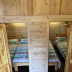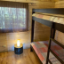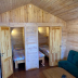 Towels and bed linen are featured in the campground. There's also a seating area and a fireplace.