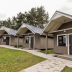 All units comprise a seating area, a dining area, and a fully equipped kitchenette with various cooking facilities, including an oven, a microwave, a fridge, and a stovetop. At the campground, units have a shared bathroom and bed linen.