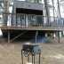 Towels and bed linen are featured in the campground. There's also a seating area and a fireplace.