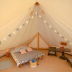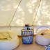 Towels and bed linen are featured in the campground. There's also a seating area and a fireplace.