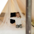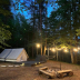Towels and bed linen are featured in the campground. There's also a seating area and a fireplace.
