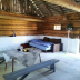 Towels and bed linen are featured in the campground. There's also a seating area and a fireplace.