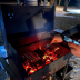 Towels and bed linen are featured in the campground. There's also a seating area and a fireplace.