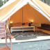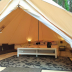 This luxury tent is equipped with a bathroom with a hot tub and a shower. Towels and bed linen are available in the luxury tent.