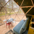 The luxury tent has a picnic area. Guests can also relax in the shared lounge area.