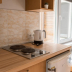 All units comprise a seating area, a dining area, and a fully equipped kitchen with various cooking facilities, including a dishwasher, an oven, a microwave and a fridge. A stovetop and coffee machine are also provided.