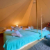The air-conditioned luxury tent also has a seating area, and a bathroom with a bidet and a shower.