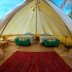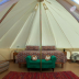 The luxury tent also includes a seating area and a bathroom with a shower.