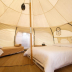 The luxury tent also includes a seating area and a bathroom with a shower.
