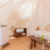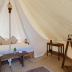 The luxury tent also has a seating area and a bathroom with a walk-in shower.