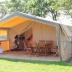 The luxury tent also has a seating area, and a bathroom with a shower and a bath.