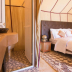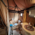 The luxury tent also has a seating area, and a bathroom with a shower and a bath.