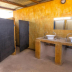 The luxury tent also has a seating area and a bathroom with a walk-in shower.