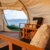 The air-conditioned luxury tent also has a fully equipped kitchen with a toaster, a seating area, a washing machine and a bathroom with a shower.