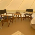 Providing a patio with garden views, this luxury tent also offers a well-equipped kitchenette with a toaster, a fridge and a stovetop, as well as a bathroom with a bath and bathrobes.
