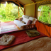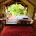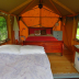 The tent is self-contained and offers a Queen bed and access to outdoor kitchen facilities. You can enjoy the private and peaceful surroundings among the gardens, flowers, trees and native birds.