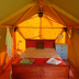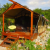 Providing a patio with garden views, this luxury tent also offers a well-equipped kitchenette with a toaster, a fridge and a stovetop, as well as a bathroom with a bath and bathrobes.