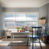 There's a seating area, a dining area and a kitchenette complete with a fridge and kitchenware.