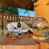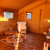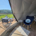 Providing a terrace with mountain views, this luxury tent also has a kitchenette and a bathroom with a shower.