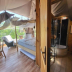 Providing a terrace with garden views, this luxury tent also offers a well-equipped kitchenette with a fridge, a stovetop and a toaster, as well as a bathroom with a shower and a hairdryer.