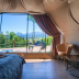 Providing a terrace with mountain views, this luxury tent also has a kitchenette and a bathroom with a shower.