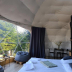 Providing a terrace with garden views, this luxury tent also provides guests with a kitchen and a bathroom with a shower and a hairdryer.