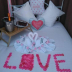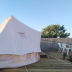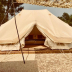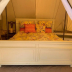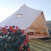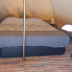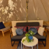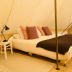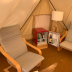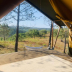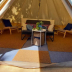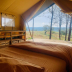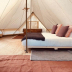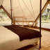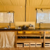The luxury tent also includes a seating area and a bathroom with a bath or shower.