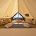 The luxury tent also includes a seating area and a bathroom with a bath or shower.