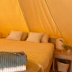 Towels and bed linen are featured in the luxury tent.