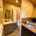 The luxury tent also includes a seating area and a bathroom with a bath or shower.