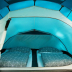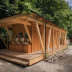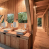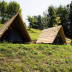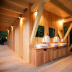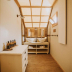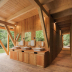 This tents are made of wood and provide futon beds, solar light and blankets. A communal bathroom with several showers and toilets is provided. There is a shared kitchen and barbecue where guests can prepare their own food, while breakfast, lunch and dinner may be ordered at a surcharge. Free tea and coffee are offered every day.