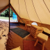 There is a dining area and a kitchen complete with a microwave, a toaster, and a fridge. This luxury tent is allergy-free and non-smoking.