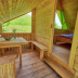 There is a dining area and a kitchen complete with a microwave, a toaster, and a fridge. This luxury tent is allergy-free and non-smoking.