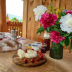 A selection of options including local specialities, fruit, and cheese are served for the continental breakfast.